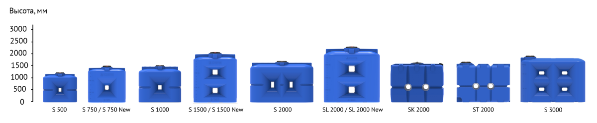 Емкости серии S имеют широкий размерный ряд.