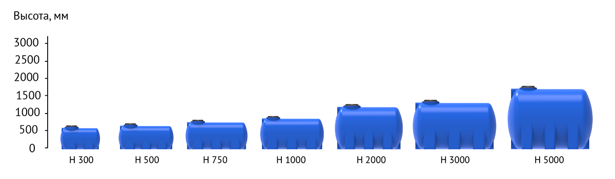 Емкости серии H имеют широкий размерный ряд.