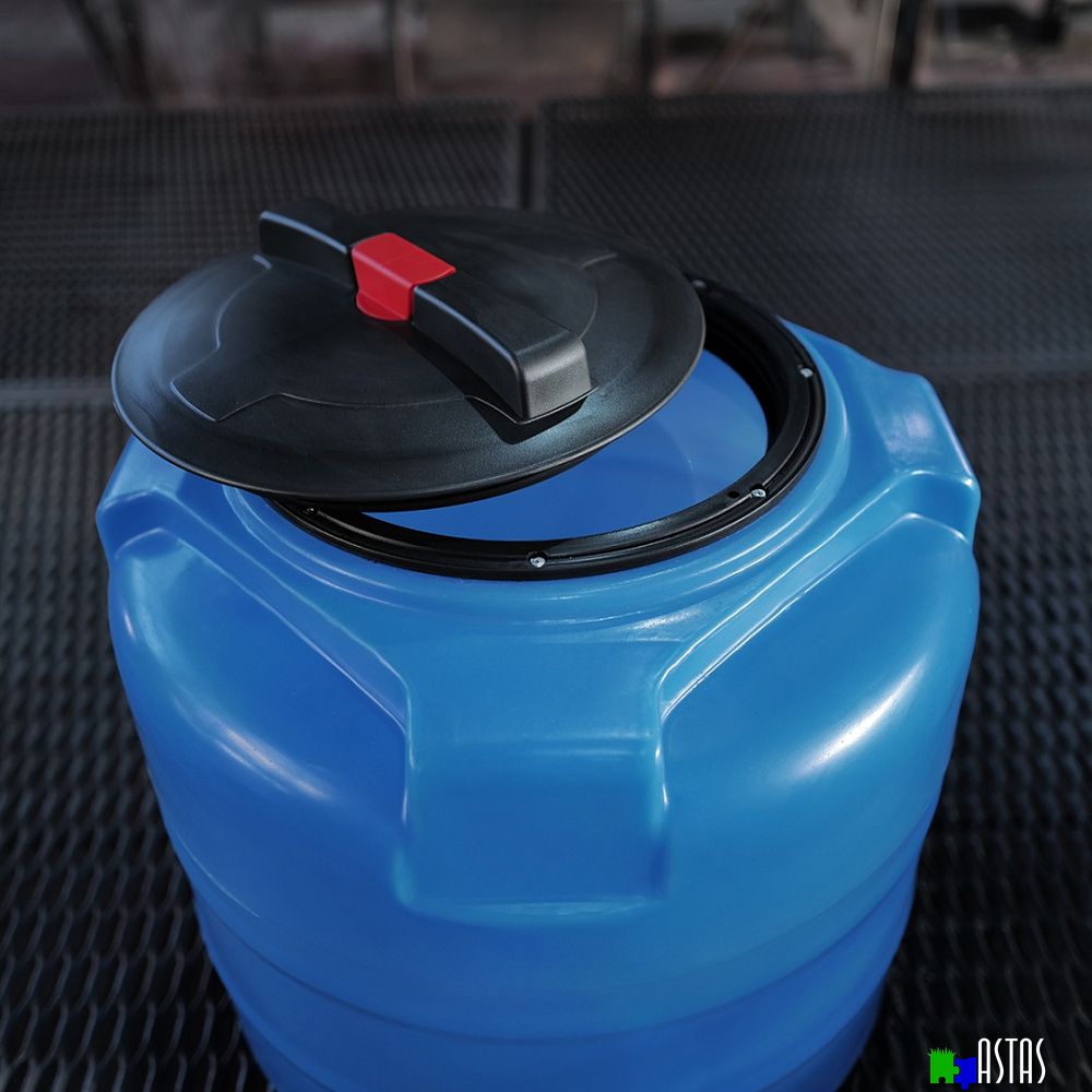 Вертикальная цилиндрическая бочка объемом 100 литров имеет максимально устойчивую конструкцию и усилена специальными горизонтальными ребрами жесткости.