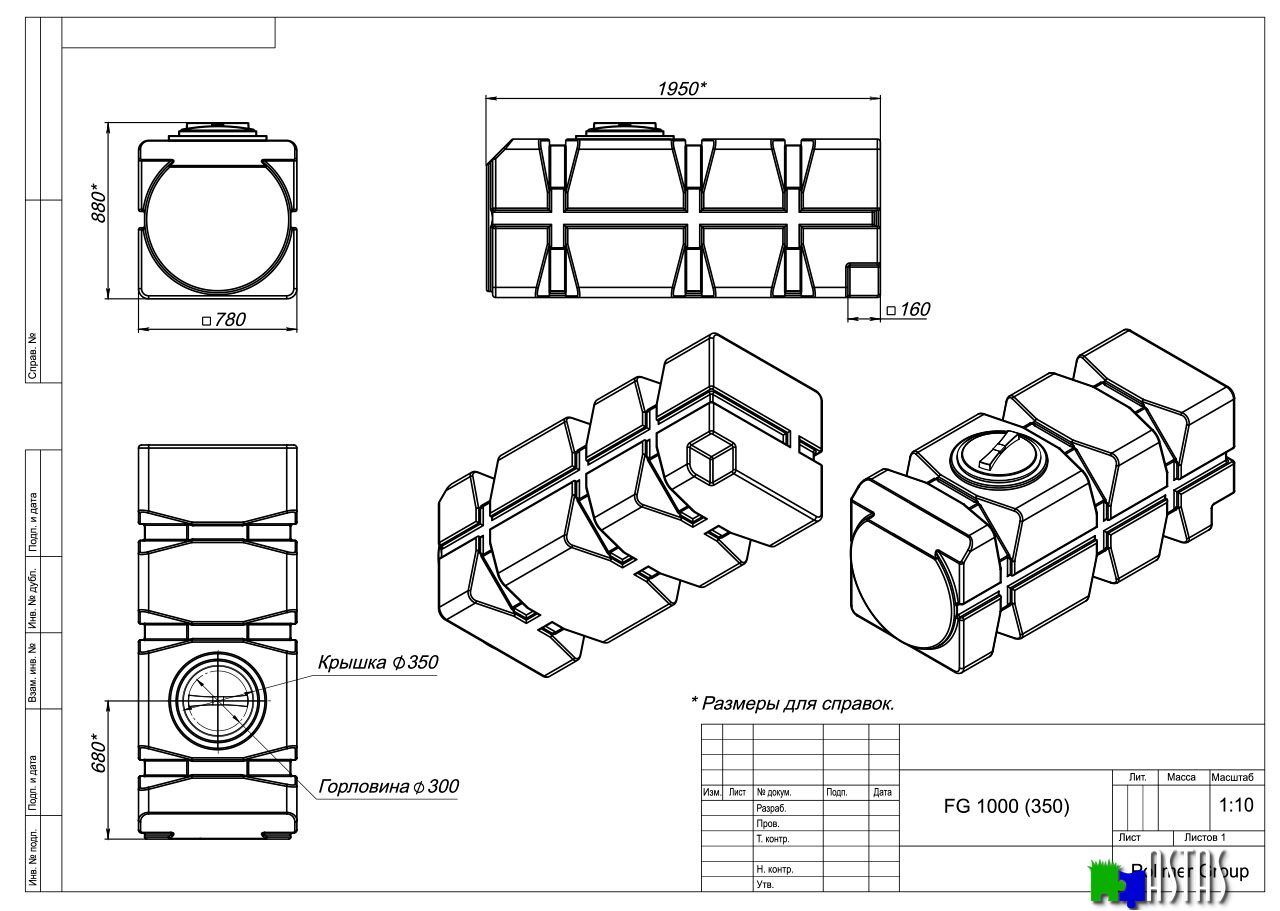 Горизонтальная прямоугольная емкость FG 1000 (350) л предназначена для хранения питьевой и технической воды, дизельного топлива.