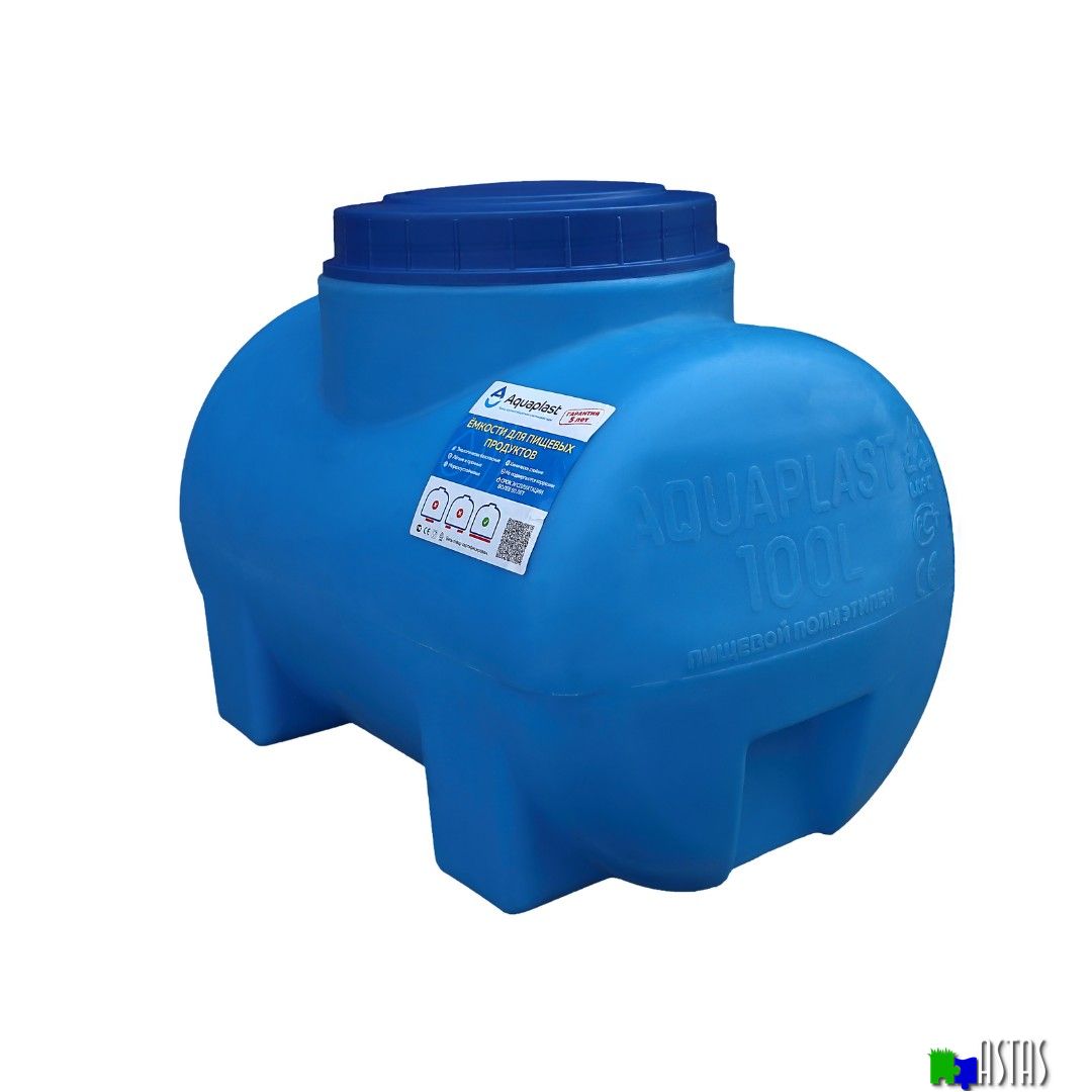 Пластиковая емкость 100 литров (синяя, горизонтальная, транспортировочная) предназначена для стационарного хранения питьевой воды, пищевых продуктов, агресивных сред (по согласованию), дизельного топлива. Разрешена эксплуатация при температуре от - 50 °С до +50 °С.