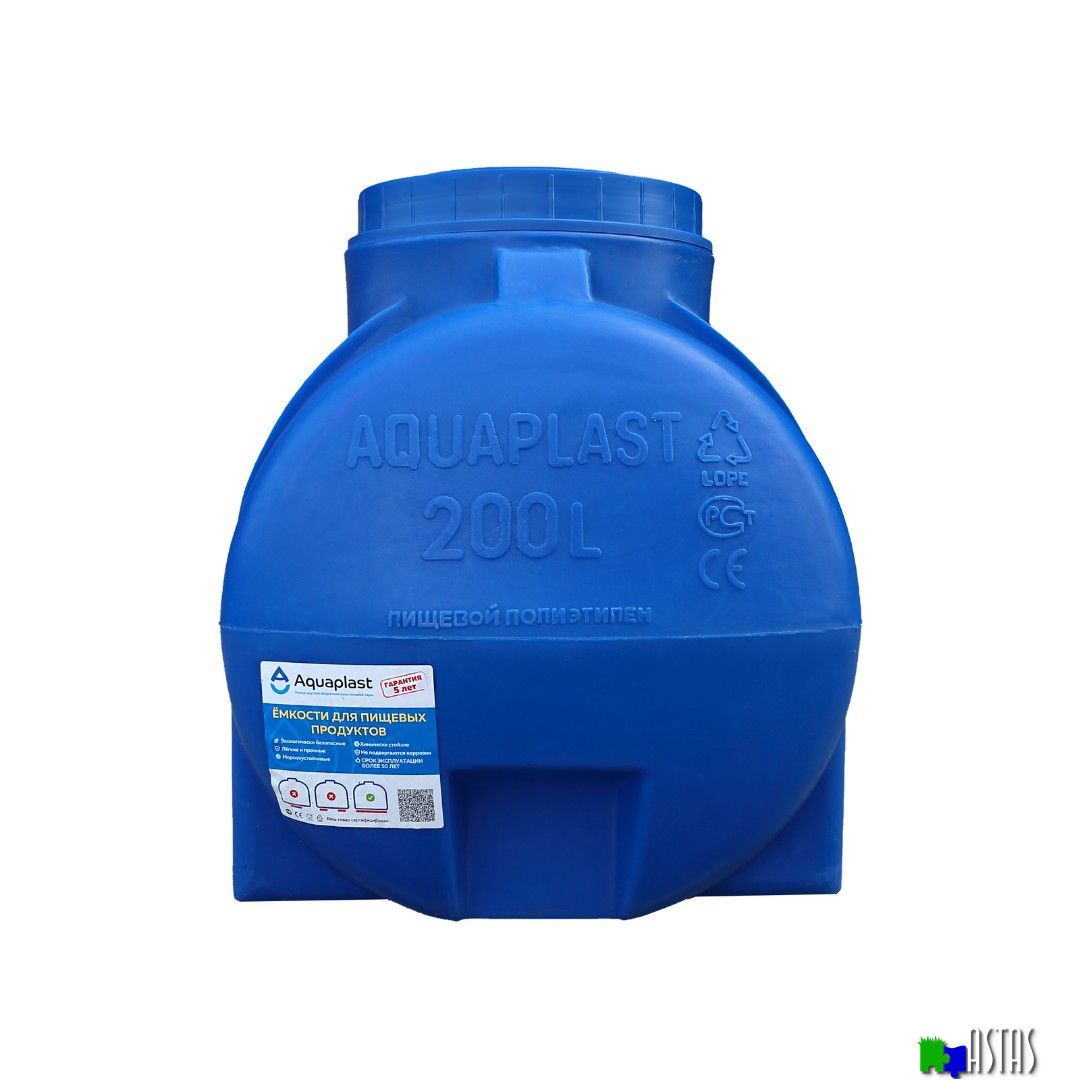 Пластиковая емкость 200 литров (синяя, горизонтальная) предназначена для стационарного хранения питьевой воды, пищевых продуктов, агресивных сред (по согласованию), дизельного топлива. Разрешена эксплуатация при температуре от - 50 °С до +50 °С.