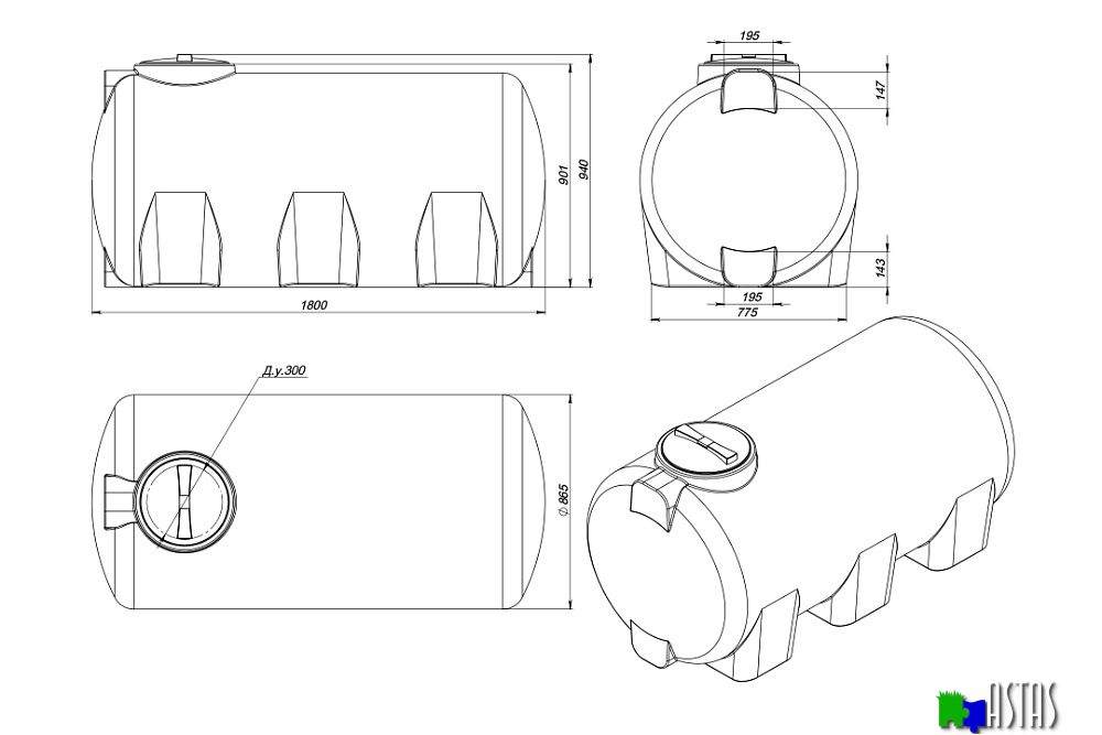 Горизонтальная емкость объемом 1 000 литров предназначена для транспортировки и хранения веществ плотностью до 1,0 г/см³ включительно, таких как: