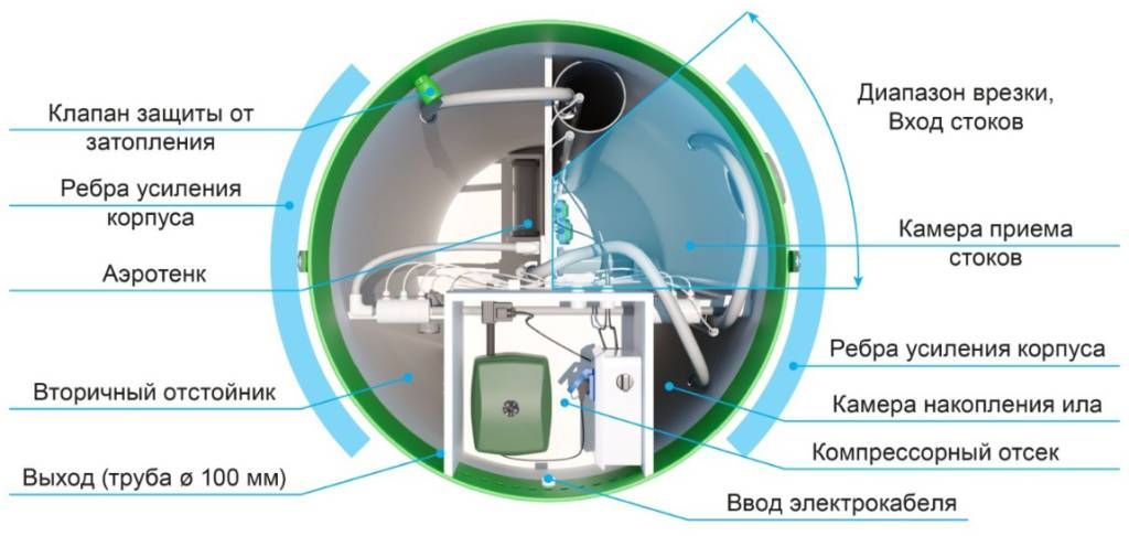 Септик специально создан для максимально очистки бытовых стоков и сведению к минимуму вредного воздействия на экологию. Материалом для корпуса станции был выбран полипропилен. Его срок службы превышает 50 лет.