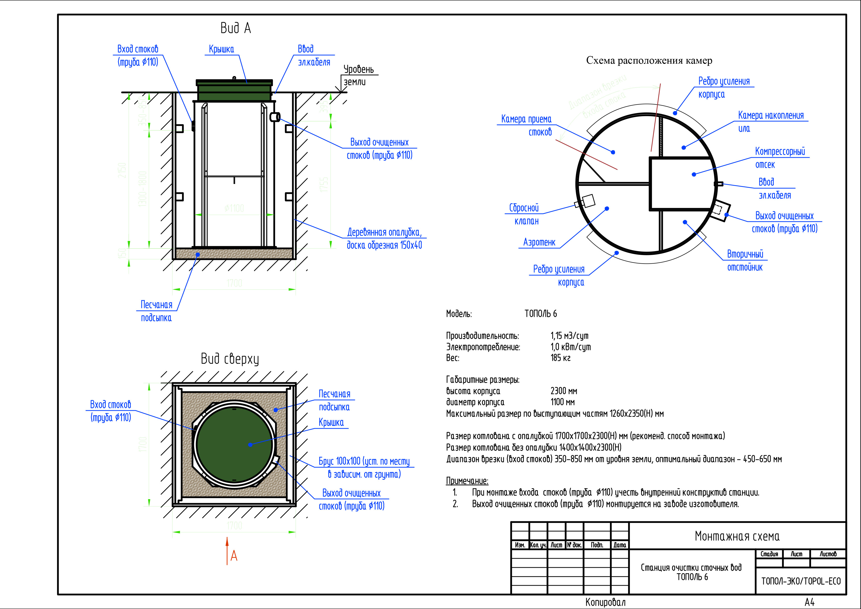 Станция ТОПОЛЬ 6 не просто септик на 5-6 человек, а инновационная разработка российской компании. В данной станции для частных домов были объединены лучшие по эффективности технологии биологической очистки бытовых стоков.