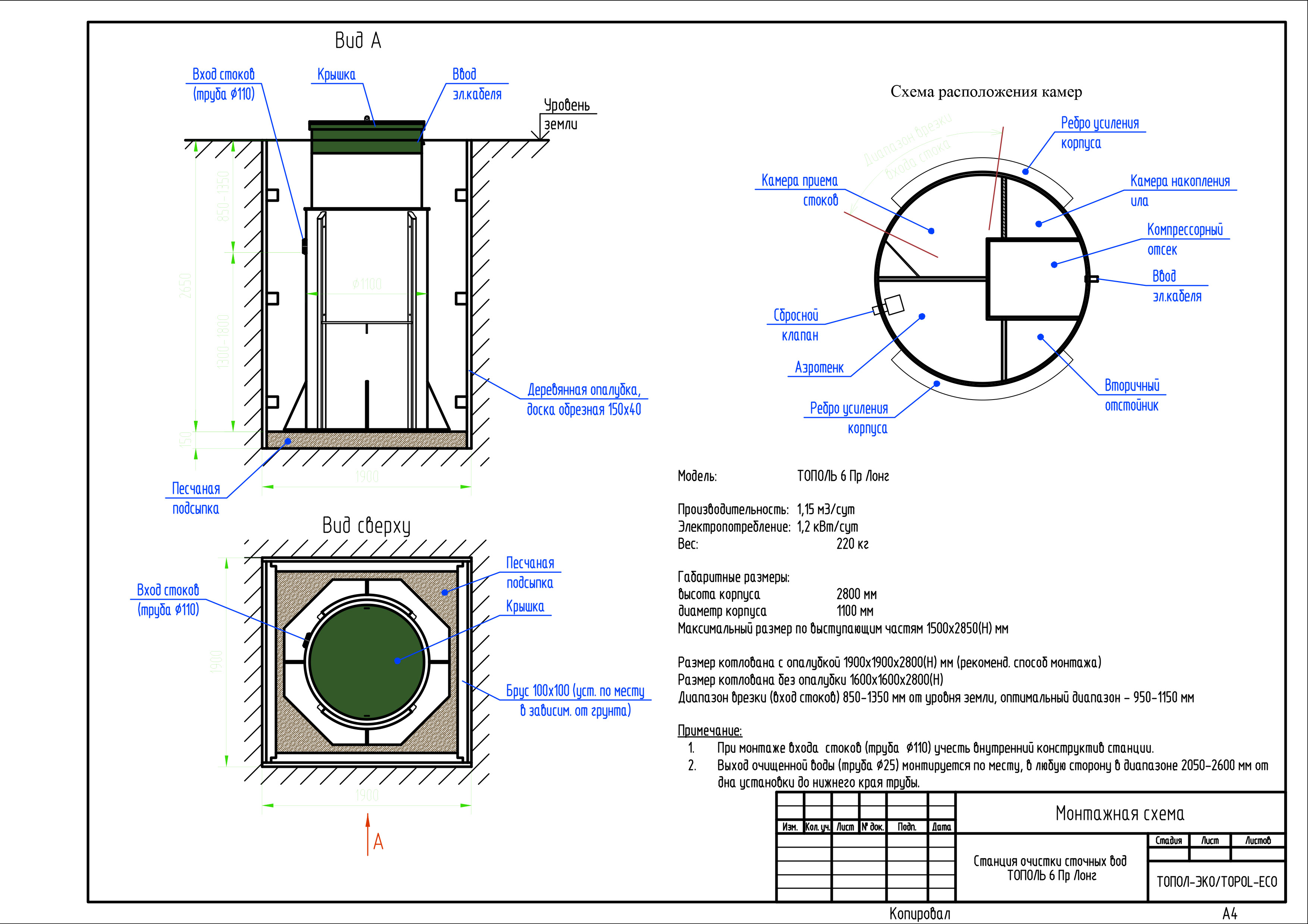 Станция ТОПОЛЬ 6 Пр Long предназначена для биологической очистки бытовых сточных вод, поступающих от отдельного коттеджа , в условиях отсутствия централизованной системы канализации.