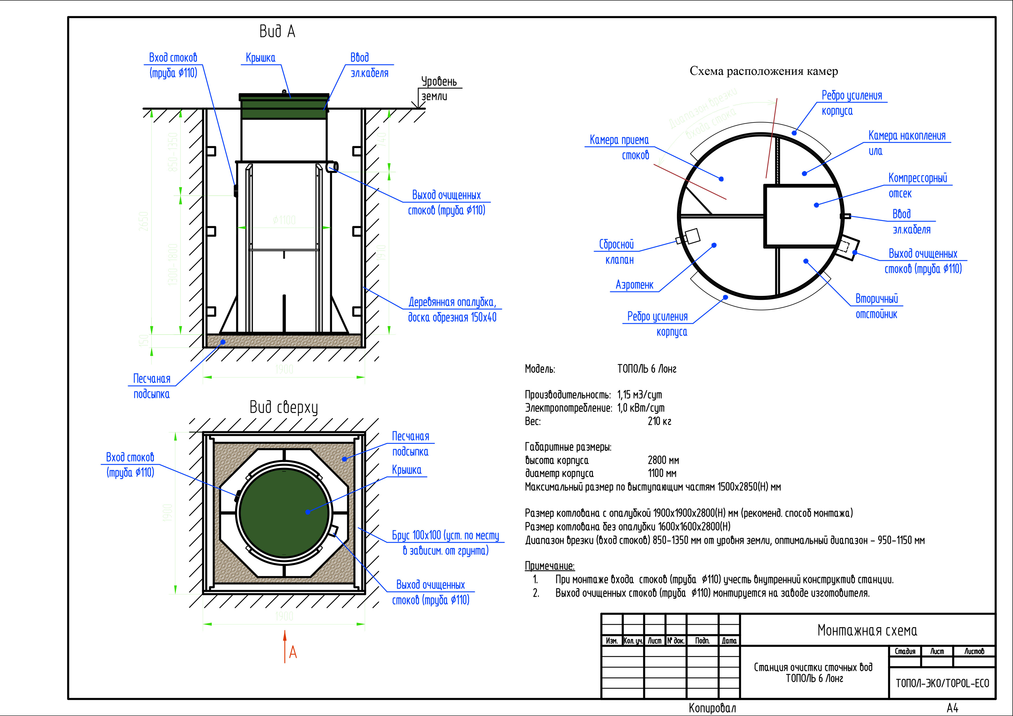 Станция ТОПОЛЬ 6 Long предназначена для биологической очистки хозяйственно-бытовых сточных вод, поступающих от отдельного коттеджа, в условиях отсутствия централизованной системы канализации.