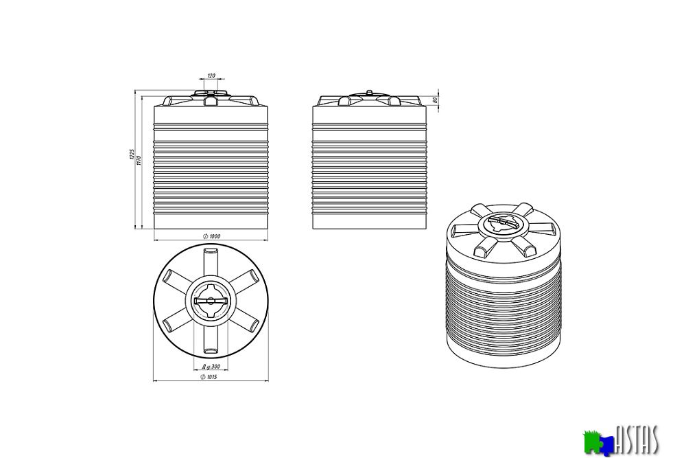 Вертикальная цилиндрическая бочка ЭВЛ 750 литров имеет максимально устойчивую конструкцию и усилена специальными горизонтальными ребрами жесткости.