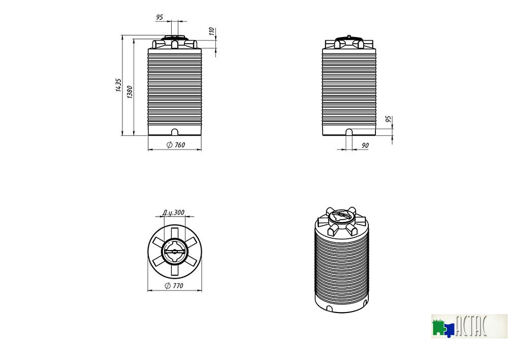 Вертикальная цилиндрическая бочка серии ЭВЛ-Т объемом 500 литров имеет компактные габариты и может быть размещена даже в условии дефицита свободной площади.