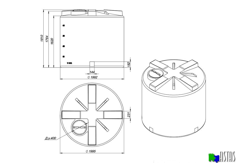 Крупногабаритная вертикальная бочка ТH 5000 литров имеет меньшую высоту и большую ширину по сравнению с емкостью T 5000л.