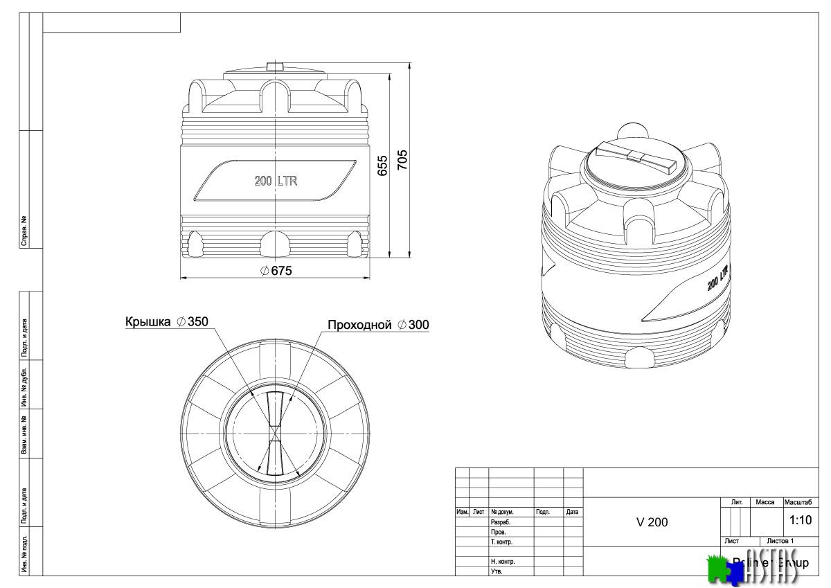 Емкость V 200 объемом 200 литров обладает улучшенными эксплуатационными характеристиками благодаря специально разработанным ребрам жесткости. Это изделие обладает повышенной устойчивостью к физическим нагрузкам. В ней можно хранить питьевую и техническую воду, различные жидкости и дизельное топливо.