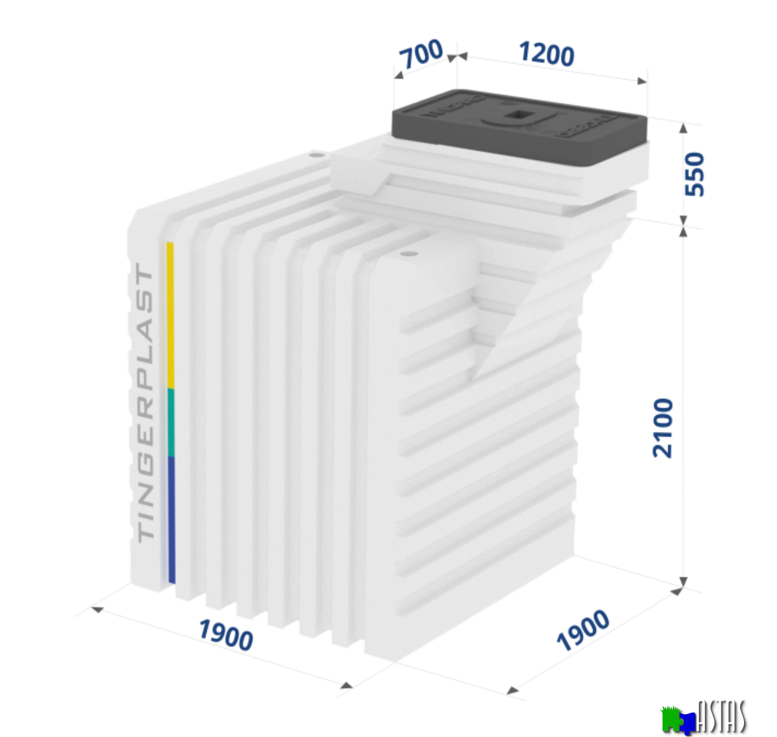 При этом толщина пластика до 15 мм, он не пропускает запахи, это защищает погреб от проникновения грызунов, так как им не за чем грызть пластик. ТИНГАРД 1900К имеет горизонтальный вход – такое исполнение удобно, когда вы монтируете погреб под строение.