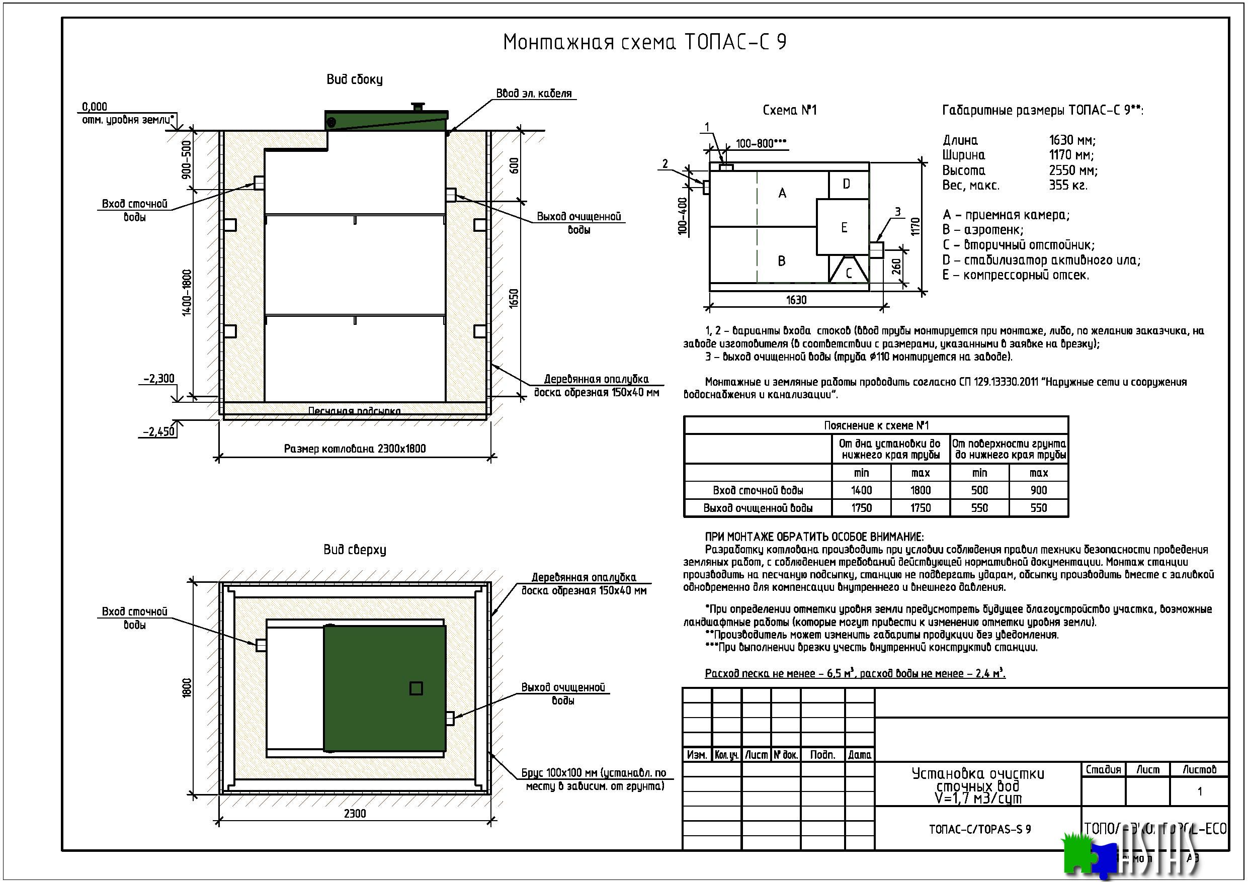 Группа компаний «ТОПОЛ-ЭКО» производит и продает установки для систем канализации загородного дома. Оборудование обеспечивает качество очистки бытовых стоков до 98 % в соответствии с нормами, установленными СанПиН. Компактные размеры «ТОПАС» позволяют легко разместить оборудование даже на небольшой площади. Корпус автономной канализации отличается повышенной прочностью и герметичностью, что позволяет избежать образования неприятных запахов. Кроме того, установка «ТОПАС-С 9» абсолютно безопасна для человека и окружающей среды. Очищенная вода не имеет цвета и запаха, может использоваться для полива не плодовоовощных культур и различных технических нужд. Системы канализации надежны в использовании и имеют длительный срок эксплуатации.